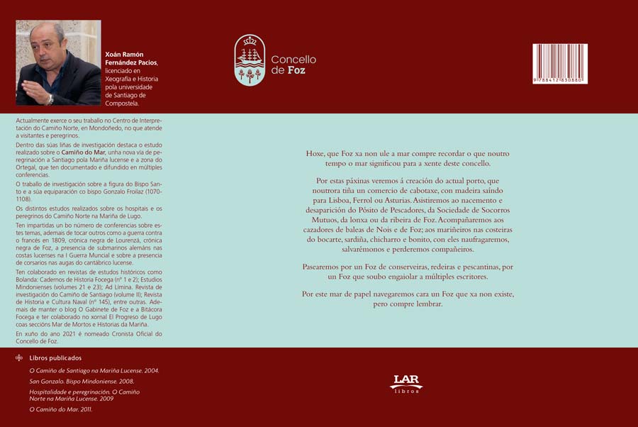 Por estas páxinas veremos á creación do actual porto, que noutrora tiña un comercio de cabotaxe, con madeira saíndo para Lisboa, Ferrol ou Asturias. Asistiremos ao nacemento e desaparición do Pósito de Pescadores, da Sociedade de Socorros Mutuos, da lonxa ou da Ribeira de Foz. Acompañaremos aos cazadores de baleas de Nois e de Foz; aos mariñeiros nas costeiras do bocarte, sardiña, chicharro e bonito, con eles naufragaremos, salvarémos e perderemos compañeiros.